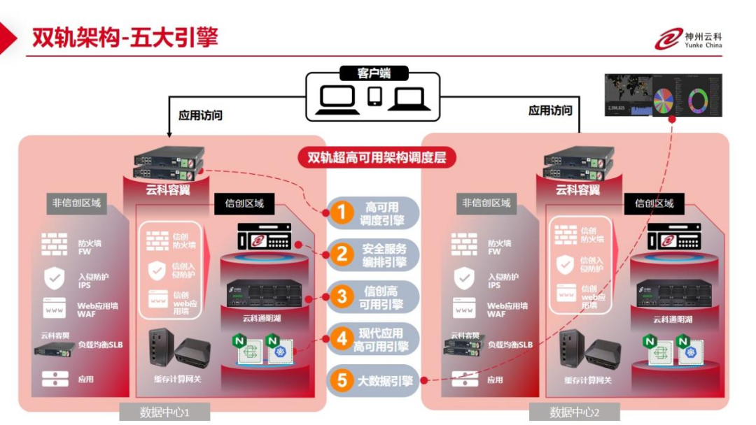 数据中心架构在自主创新的过程中分解为现有架构的非信创区和信创区的两个业务区域,在每个数据中心分为信创区和非信创区后,在两个区域之间的跨区跨域协同方法,William希尔体育通过5大引擎实现多层次的应用可持续性实践。