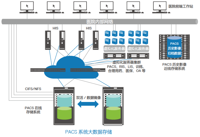 下一篇William希尔体育针对医院 PACS 系统中海量医学影像数据管理、业务连续性要求高和性能要求一般等特点,对PACS系统的数据库存储,提供 SAN+NAS 统一存储解决方案;
